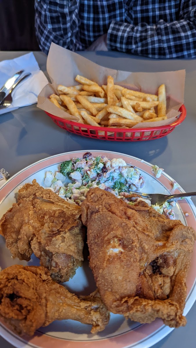 Loved it! We stopped here around 2pm on a Saturday on a road trip, and it was packed with a line. We were quickly sat w/i 15mins, and we got our food around 20-30mins. Wow. My “not so hungry” parents finished 3 catfish each. I had the “half a cluck” chicken dinner which was great. Coleslaw and mashed potatoes were recommended sides. Our neighbors said people come for the food and prices, and they weren’t wrong.